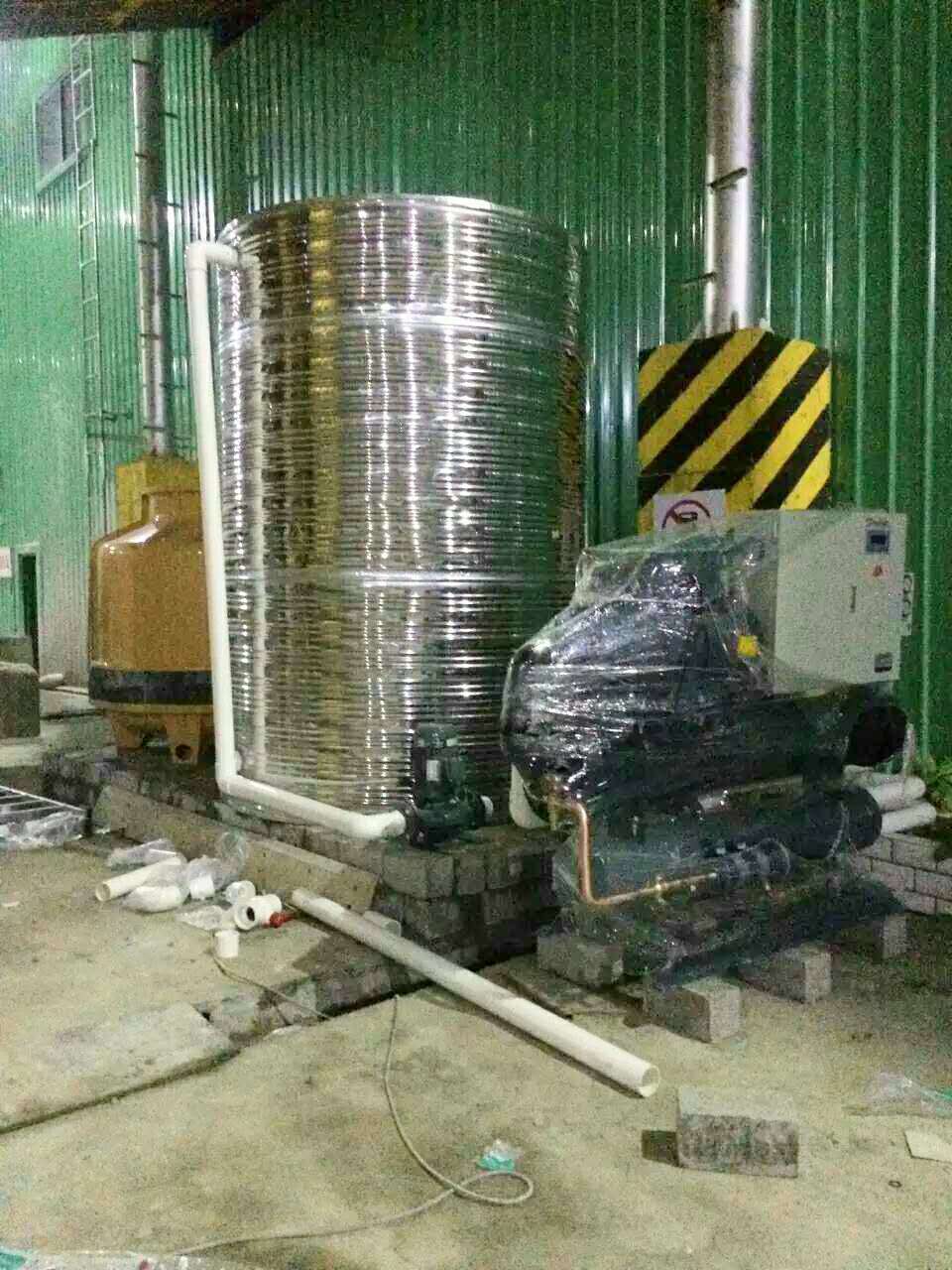 經過供需雙方不斷的計算對比,最終確定選用水冷螺桿式冷水機3臺,并配套冷卻水塔、不銹鋼保溫水箱、循環(huán)水泵等輔助設備。
